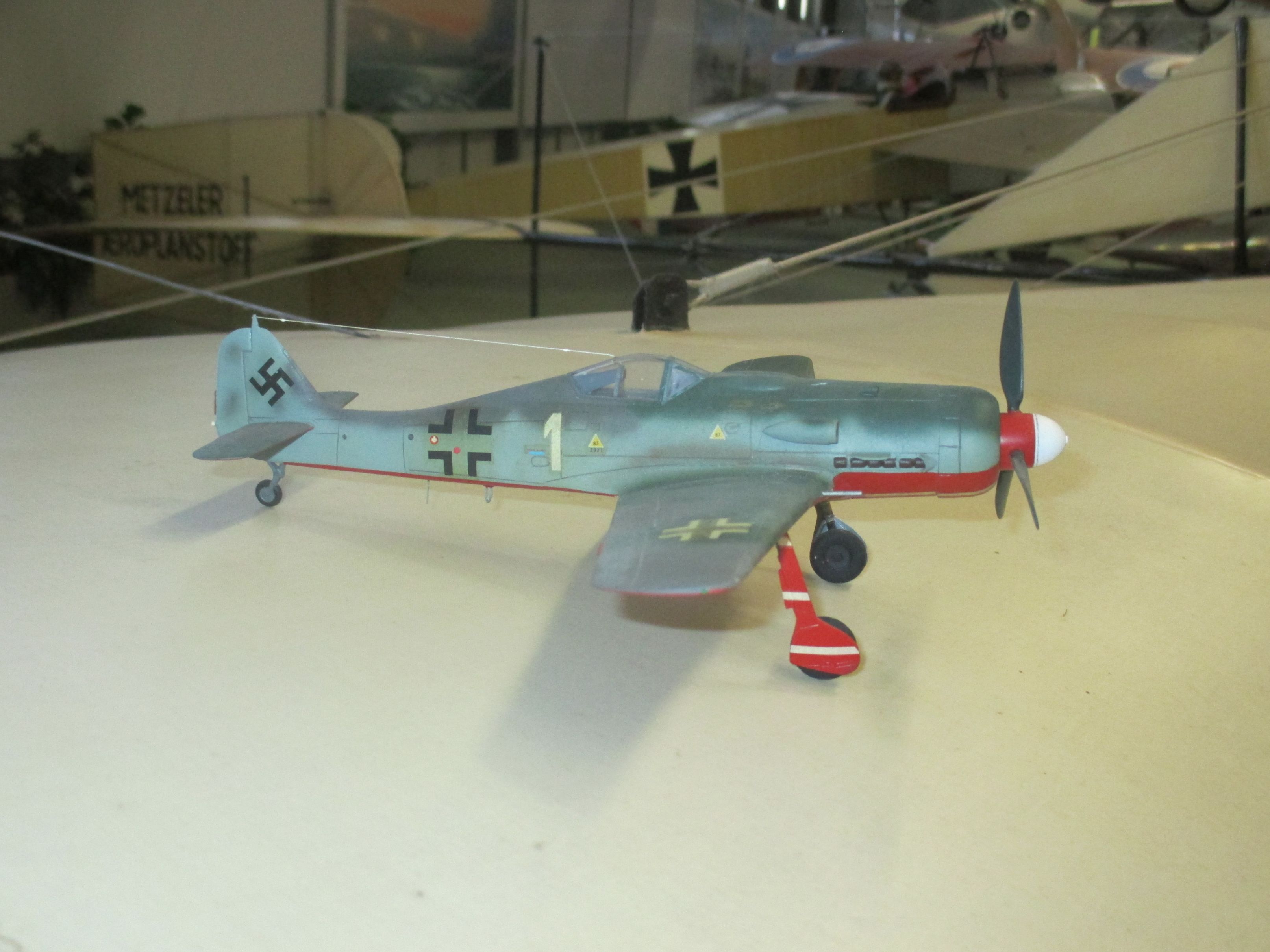 Vom Museumsvereinsmitglied Wilfried Lassoff erbaut, stellt das Modell eines der fünf Flugzeuge des „Sachsenberg-Schwarms“ dar, deren Aufgabe die Sicherung der Me 262 A des Jagdverbandes 44 bei Start und Landung war.