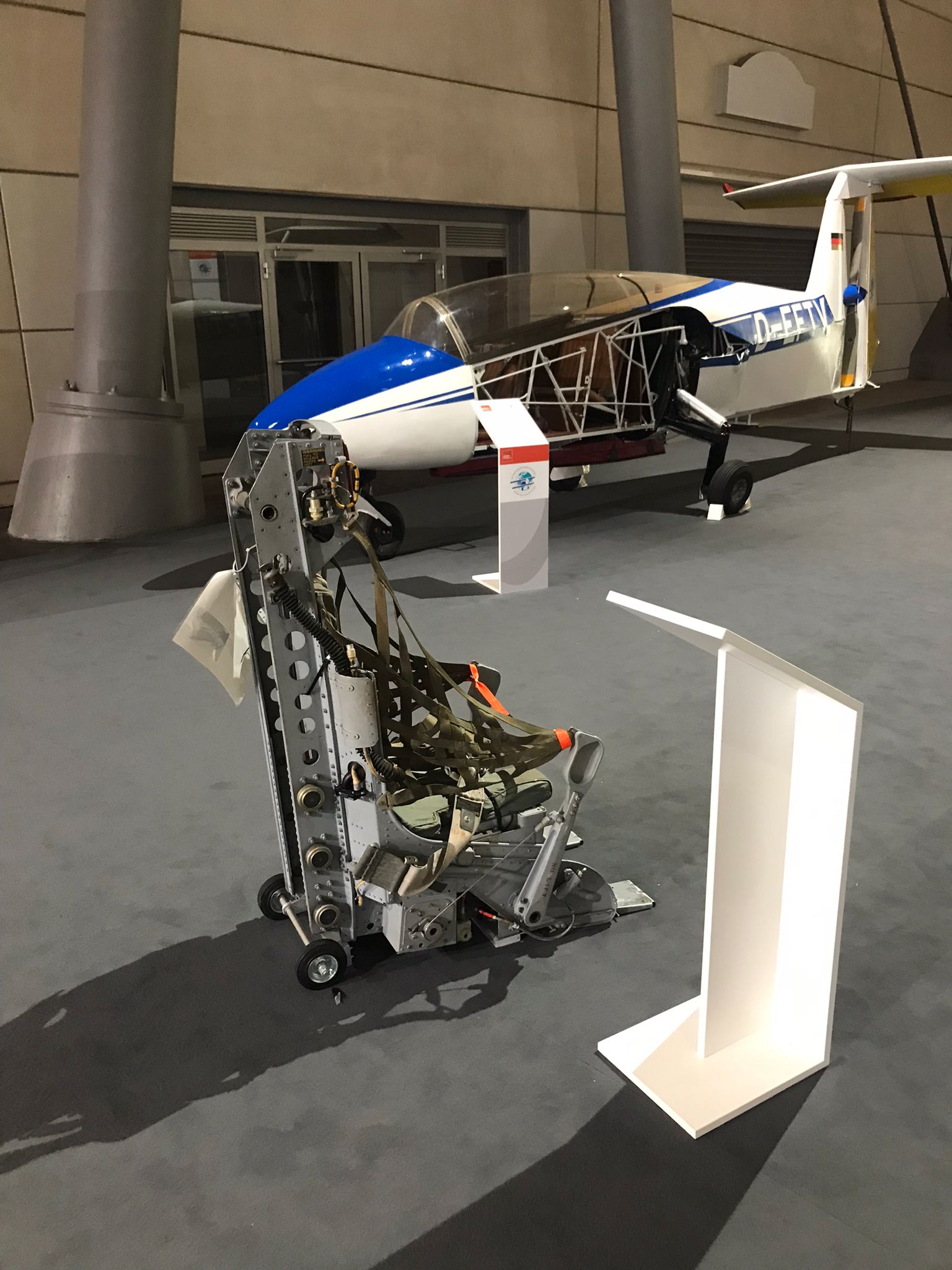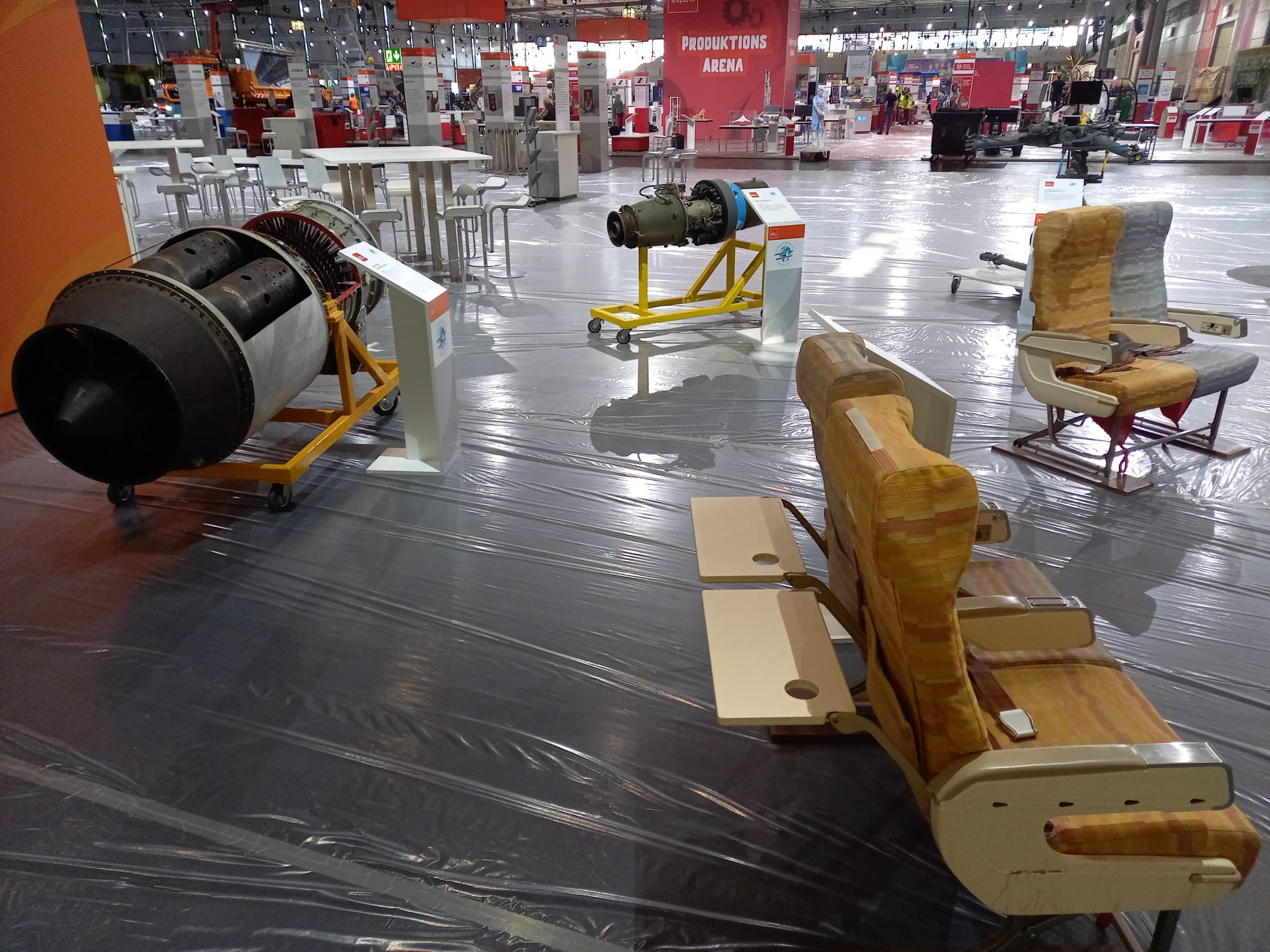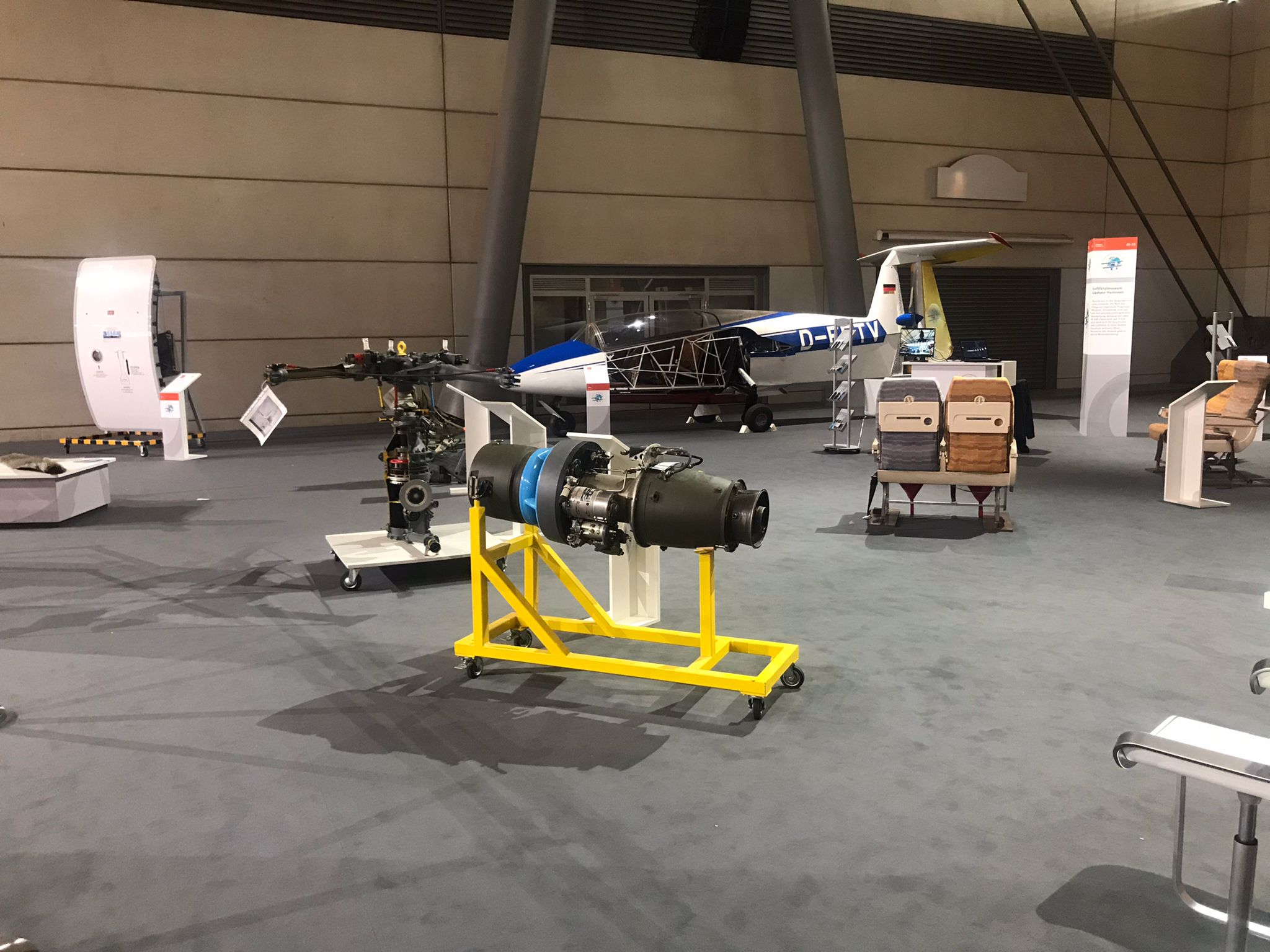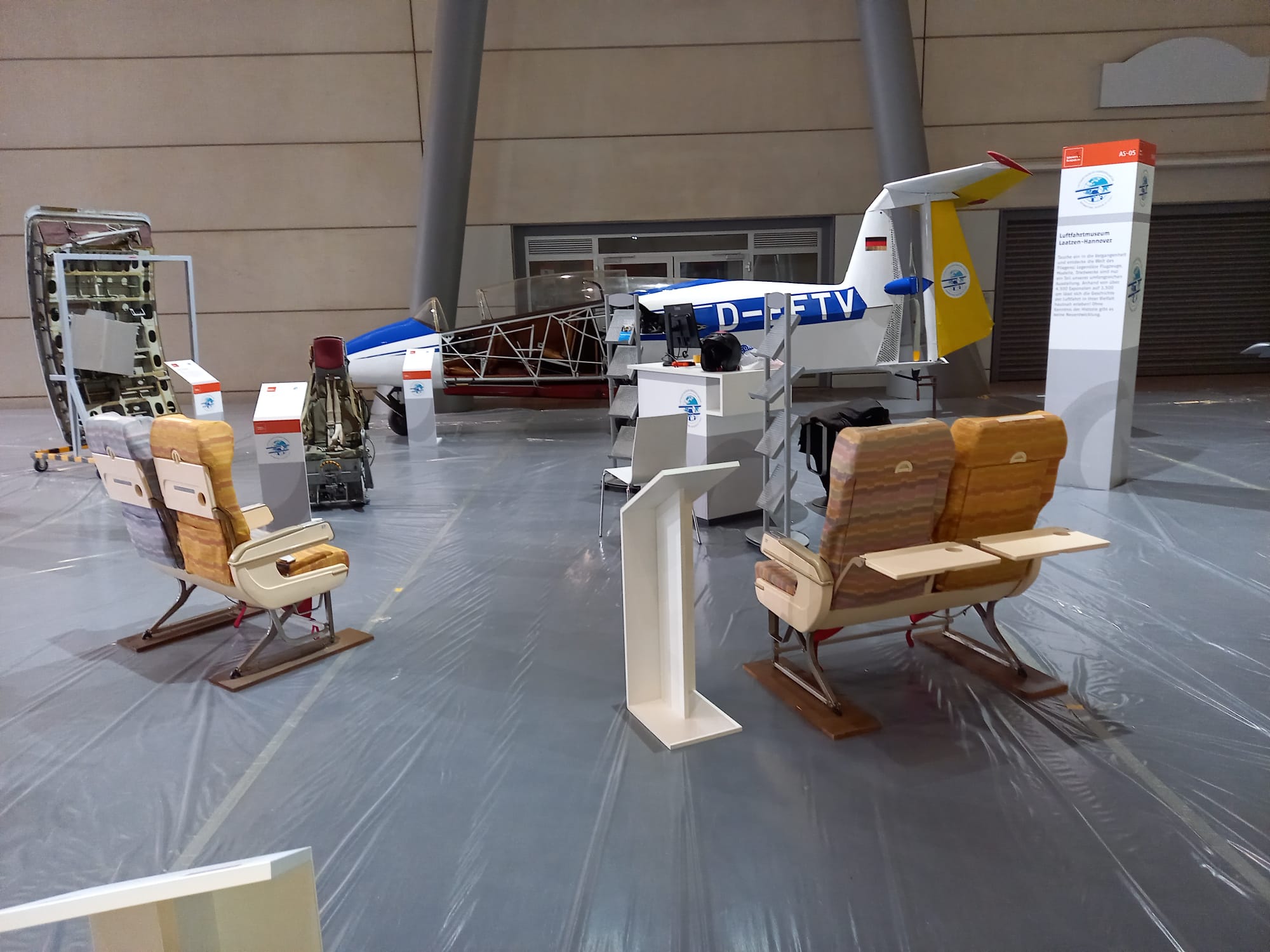 Auf 315 qm zeigen wir folgende Exponate: Bordtür und Sitze vom Airbus A300-600,