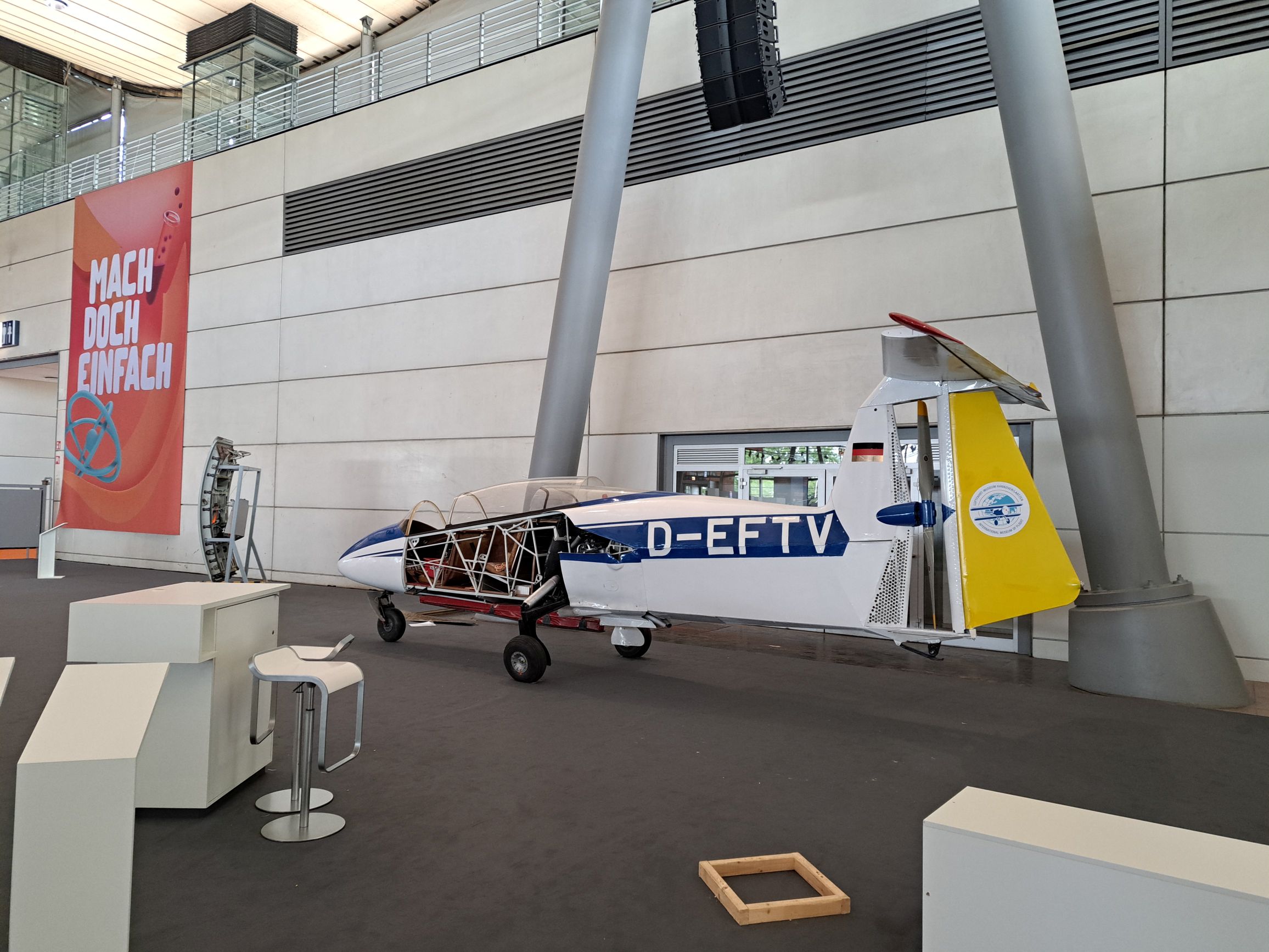 Das Foto stammt vom 8. Juni 2024 09:30 Uhr. Noch ist genug Platz und im Hintergrund sieht man, dass es noch mehr zum Thema Luftfahrt zu erkunden gibt (siehe Segelflugzeug).
